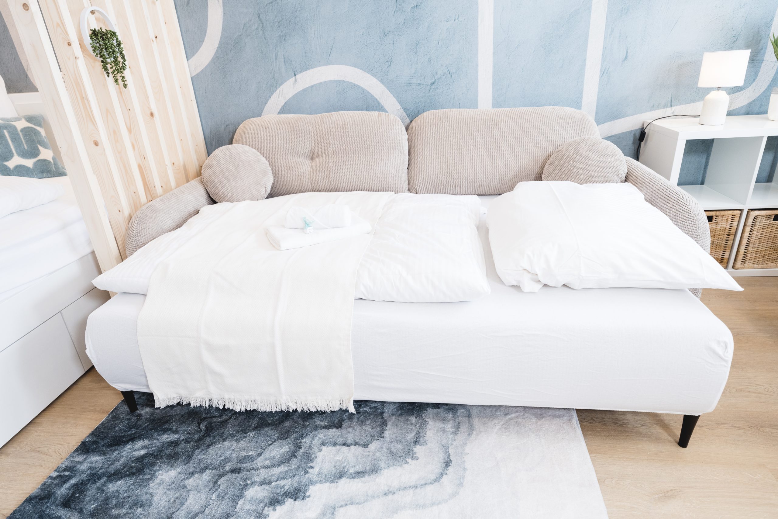 Für dieses Projekt durfte ich ein kleines möbliertes Apartment für die Kurzzeitvermietung gestalterisch neu denken. Ziel war ein durchdachtes Einrichtungskonzept, das den vorhandenen Raum optimal nutzt, hochwertig wirkt und Gästen vom ersten Moment an ein gutes Gefühl vermittelt.